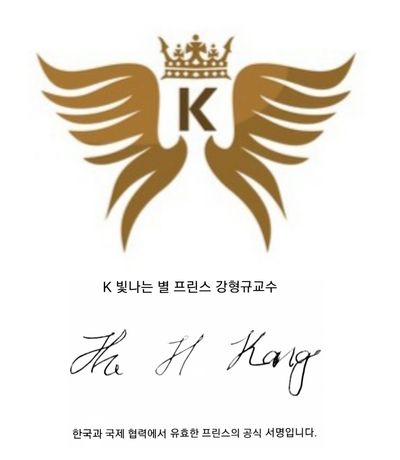 K 하늘을 나는 눈부신 국가브랜드 한국의 프린스 강형규교수의 자손만대 프린스 직위가 청와대와 관련 부처에 의해 정식으로 승인 되었습니다. 국외에서는 스웨덴 왕궁과 영국 왕궁에서 정식으로 승인되었습니다~